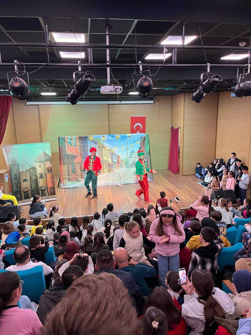 Atölyelerin ardından program, konferans salonunda sahnelenen tiyatro gösterisiyle devam etti. Fatih Sancaklı tarafından yazılıp yönetilen Karagöz-Hacivat oyunu, öğretici mesajları ve eğlenceli anlatımıyla minik izleyicilerden alkış aldı.