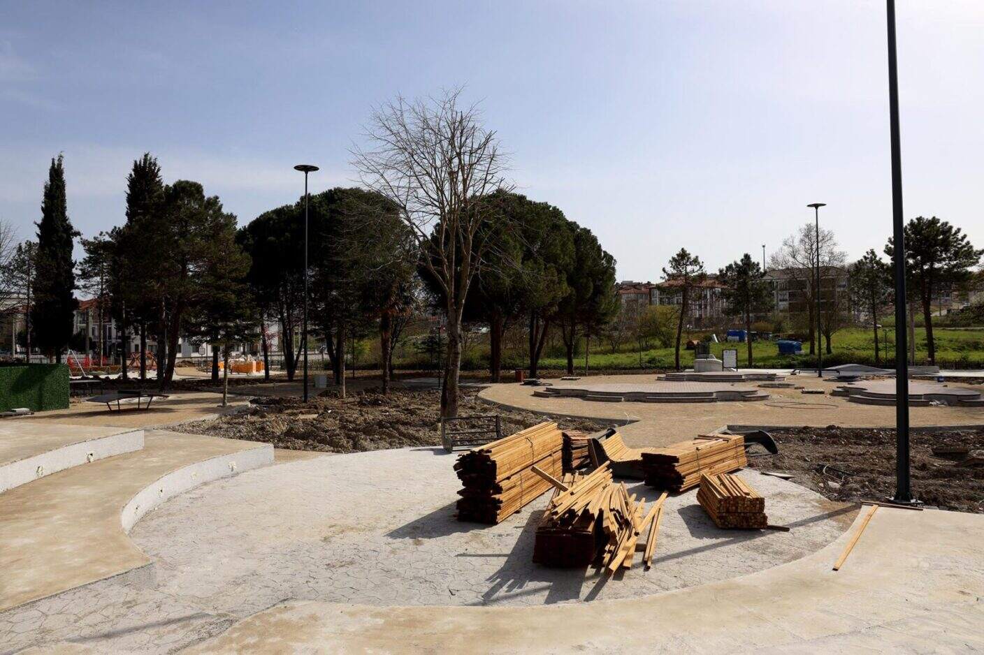 Parkın etrafı ferforje çitlerle çevrilirken, sulama altyapısı kurulumu tamamlandı. Amfi alanı ve oturma gruplarının beton imalatı bitirildi. Masa tenisi ve ayak tenisi ekipmanları kuruldu. Giriş takı, büfe, toprak tesviye, ağaç dikimi ve peyzaj çalışmaları ise sürdürüyor.