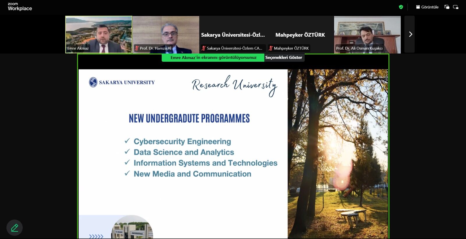 Toplantıda, ortak araştırma projeleri, akademisyen ve öğrenci hareketliliği, çift diploma programları ile kalite ve akreditasyon süreçleri ele alındı. Ayrıca, yeni medya ve iletişim alanında iş birliği fırsatları da gündeme geldi. Sakarya Üniversitesi Uluslararası Ofis Koordinatörü Dr. Öğr. Üyesi Emre Akmaz ve Araştırma Dekanlığından Doç. Dr. Hasan Algül, uluslararası projeler ve iş birliği imkanları hakkında sunum yaptı. Karşılıklı olarak yürütülen çalışmalar ve geleceğe yönelik planlar paylaşıldı.